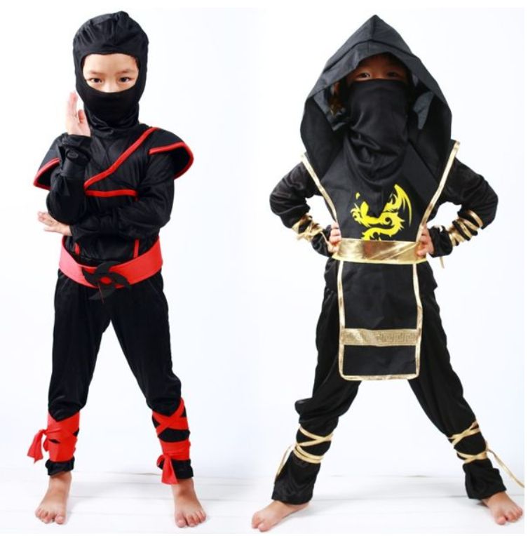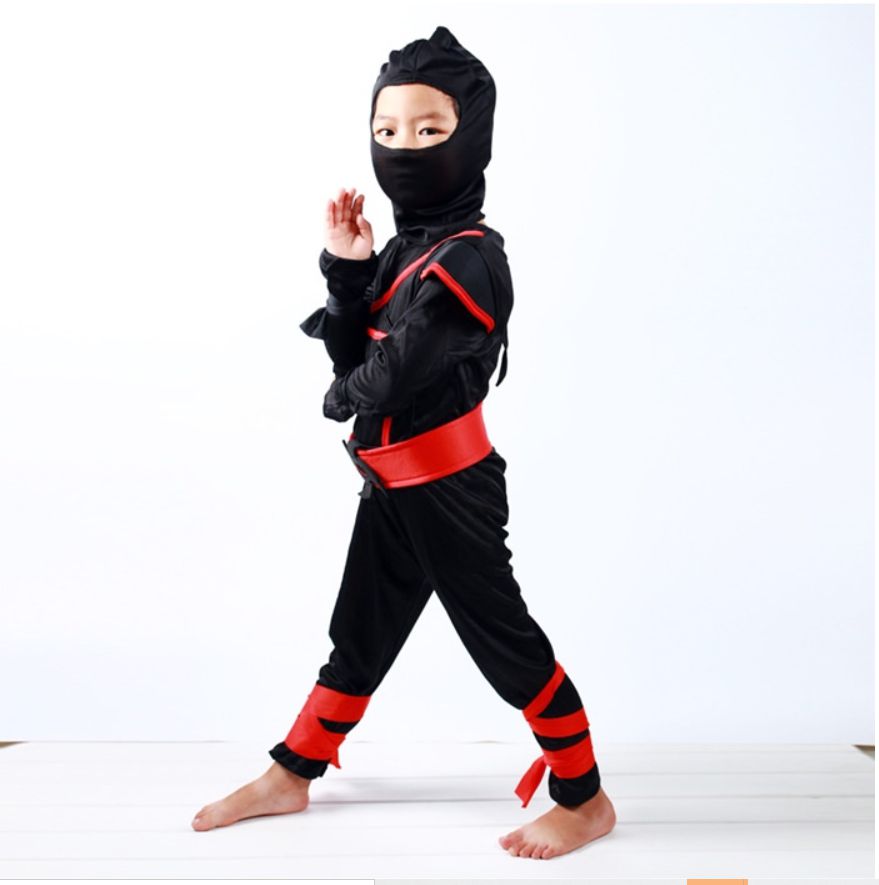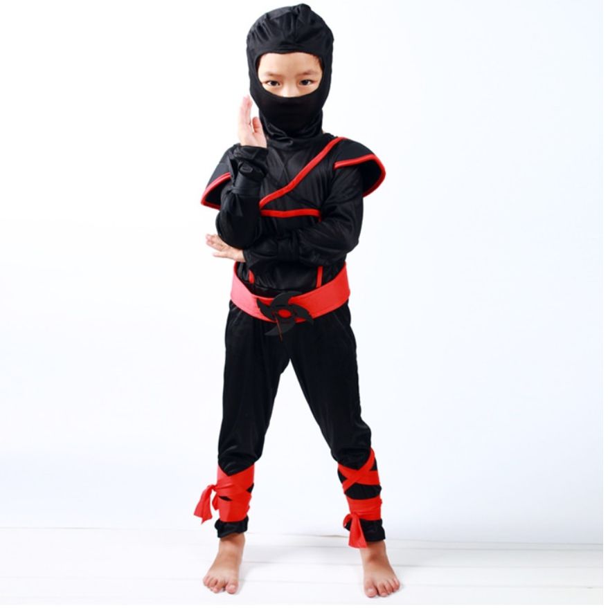 忍者–連身衣+頭套+腰帶+兩條紅綁帶+兩條黑綁帶