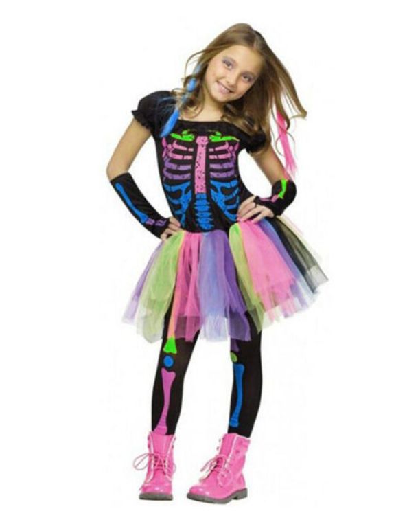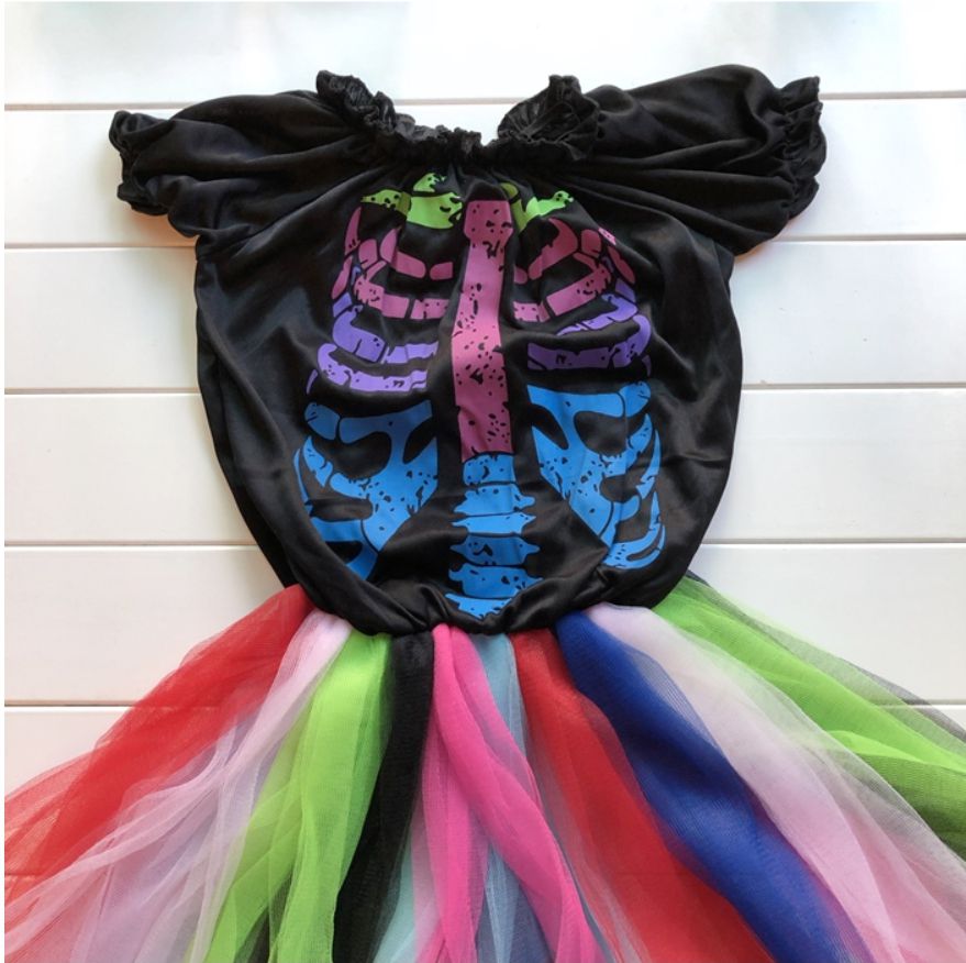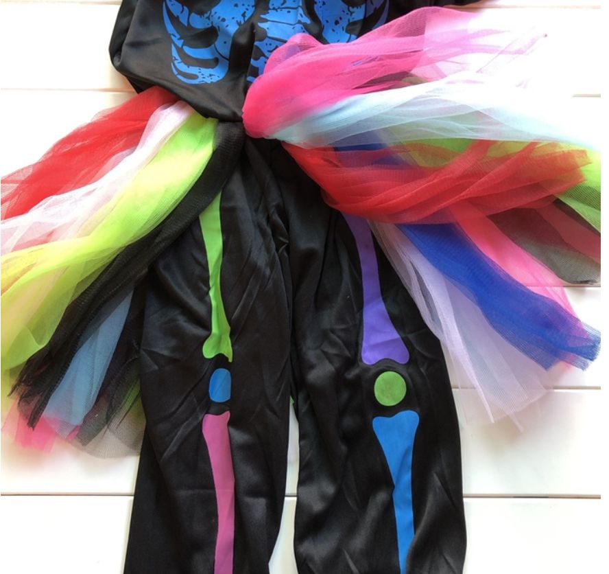 四件式:彩虹骨架上衣+彩色蓬蓬裙+袖套+骨頭內搭褲